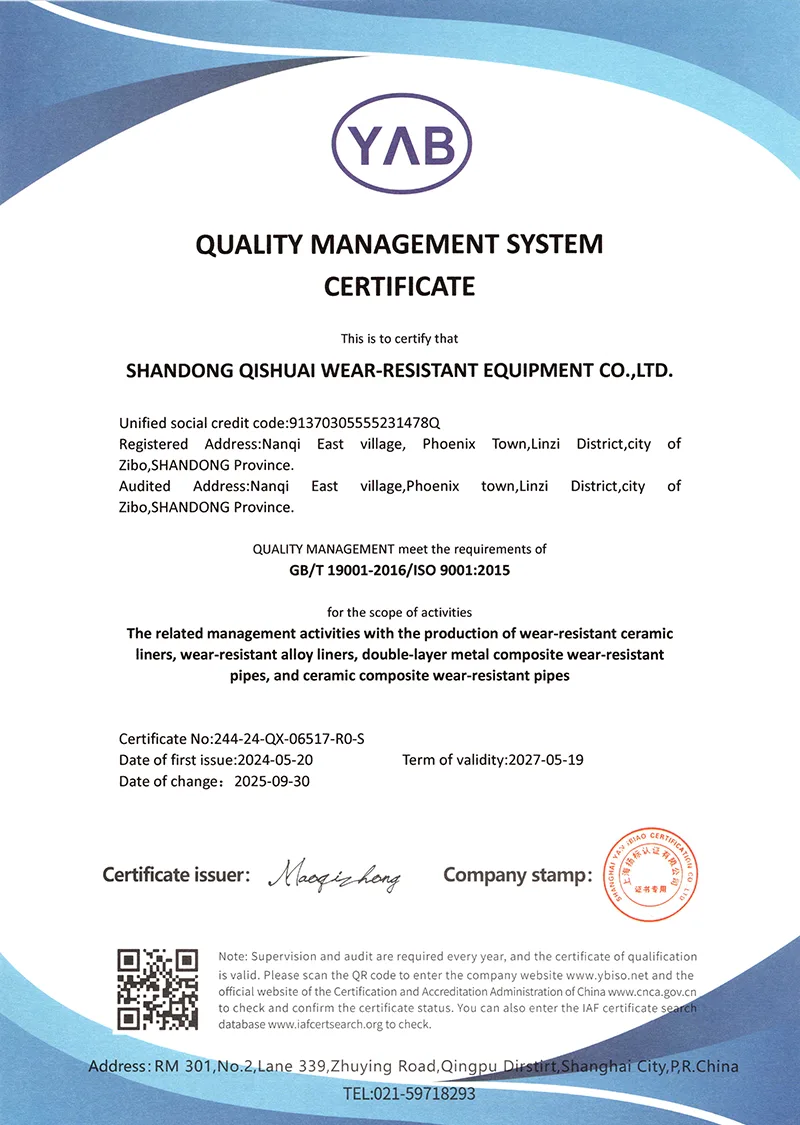 Lisaks tõstame pidevalt oma taset ja viime aktiivselt läbi uuendusi. Ettevõte on välja töötanud rea kulumiskindlaid materjale ja tehnoloogiaid koos intellektuaalomandi õigustega ning saanud kasutajatelt häid hinnanguid ja saanud ka rikkalikku tulu. Peame alati kinni kõrge kulumiskindluse ja pika kasutusea disainikontseptsioonist. Esmalt valime suure jõudlusega materjalid, nagu kroomkarbiidi sulam ja suure tihedusega alumiiniumoksiidi keraamika. Disainipõhimõtted: sobivad töötingimused, kõrge jõudlus, ohutus ja töökindlus. Kui teil on maailmaprobleem, mida Krupp lahendada ei suuda, tulge Qishuaile!