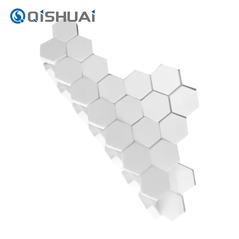 Shandong Qishuai kulumiskindlate seadmete Co., Ltd. kvaliteetne Hex Alumina Ceramic Mosaiic, nagu joonisel näidatud, on iseloomuliku kuusnurkse disainiga, mis eristab neid tavalistest ruudukujulistest või ringikujulistest plaatidest. Igal kuusnurksel alumiiniumoksiidi keraamilisel mosaiikplaadil on siledad, voolavad servad, mille suurepärased detailid on selgelt nähtavad.