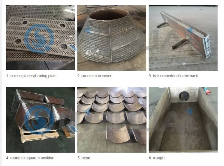 - Ühe rulliga purusti põhivõllid, üherullilised purustivõllid, plaatide parandamise kattekeevitus, räbu rennid, jaotuskettad, vibreerivad etteandevooderdised, vibreerivad sõela vooderdised, maagi punkrid, punkri labad ja kulumiskindlad komponendid veeräbu transportimiseks. Need taluvad tõhusalt kõrge temperatuuriga räbu, maagi ja muude materjalide hõõrdumist, vähendades terasetootmisseadmete seisakuid ja tagades stabiilse tootmistegevuse.