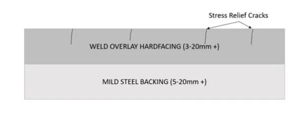| Tugev materjali küürimine ja kiire kulumine | 1. Kulumiskindla kihi kõvadus (HRC)2. Karbiidi tüüp ja jaotus | 1. Kõrge kõvadusega sulamikiht (HRC 60+)2. Tihe ja ühtlane kulumiskindel struktuur | Lõikamine, keevitamine, poltide kinnitamine |