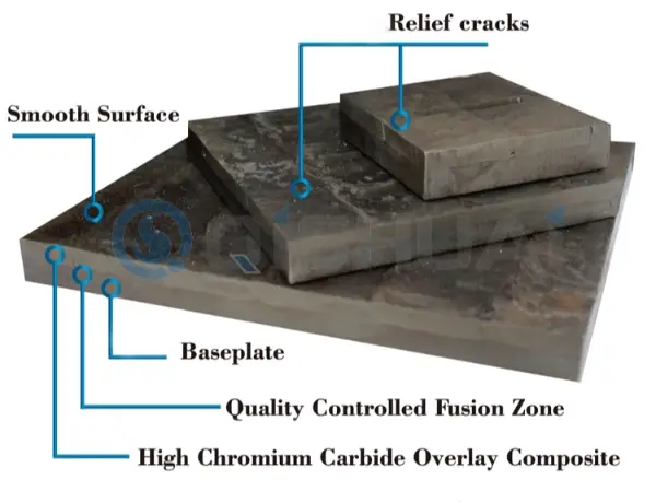 Kasutame täiustatud automaatse pinnakatte tehnoloogiat, et katta tugevatele terasplaadist aluspindadele mitmesuguseid suure jõudlusega kulumiskindlaid sulameid, luues komposiitmaterjale, millel on "kõva välisilme ja sitke sisemus". Selle peamine eelis seisneb äärmiselt suures paindlikkuses: