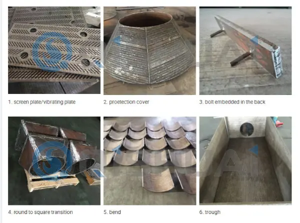 • Söe-/kaevandustööstus: kivisöe ettevalmistussõelad, maagi ülekanderennid, mördi transportimise torude vooderdised.